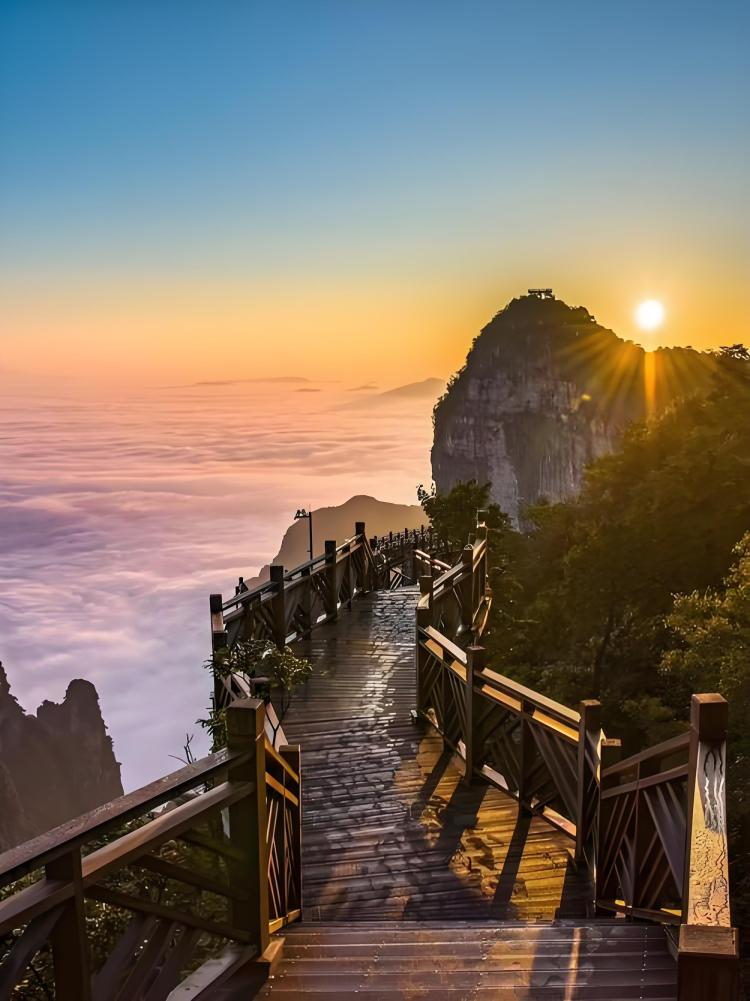 小建议:有时间一定要去看一次山顶日出。云间的仙雾被东方的金光驱散,雾中的水汽映照着璀璨的光芒散发着七彩的颜色,那景象,山水画卷莫过如此!